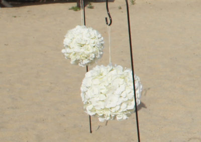 Für die Blumendeko des Holzpavillon gibt es standard künstliche weisse Hostensien, welche mit frischen Blumen, nach Ihrer Wahl, aufgepeppt werden. Zudem haben wir 6 künstliche Blumenkugeln aus weissen Hortensien, welche rechts und links vom langen weissen Teppich an im Boden steckende Stäben aufgehängt werden.
